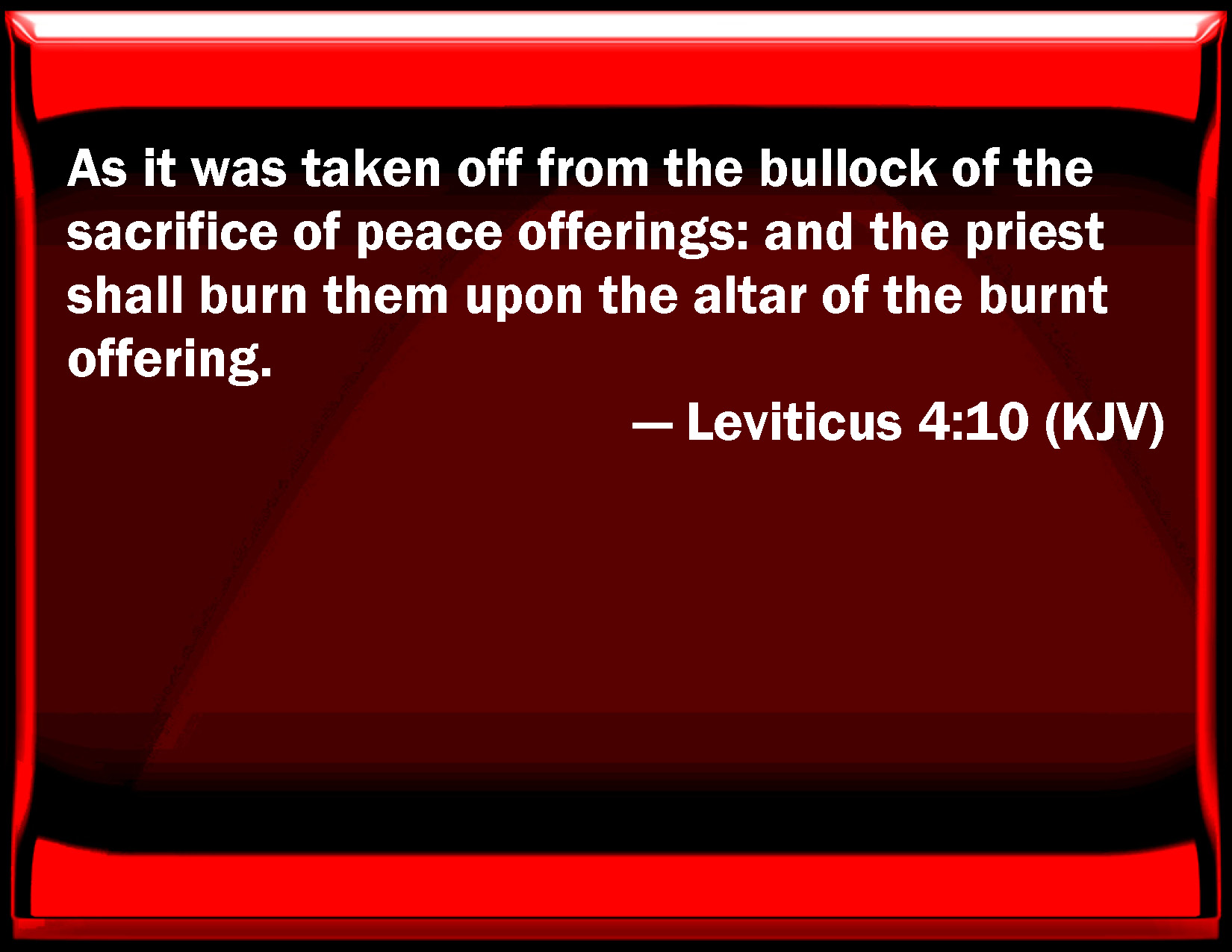 Leviticus 4:10 As it was taken off from the bullock of the sacrifice of peace offerings: and the priest shall burn them on the altar of the burnt offering.