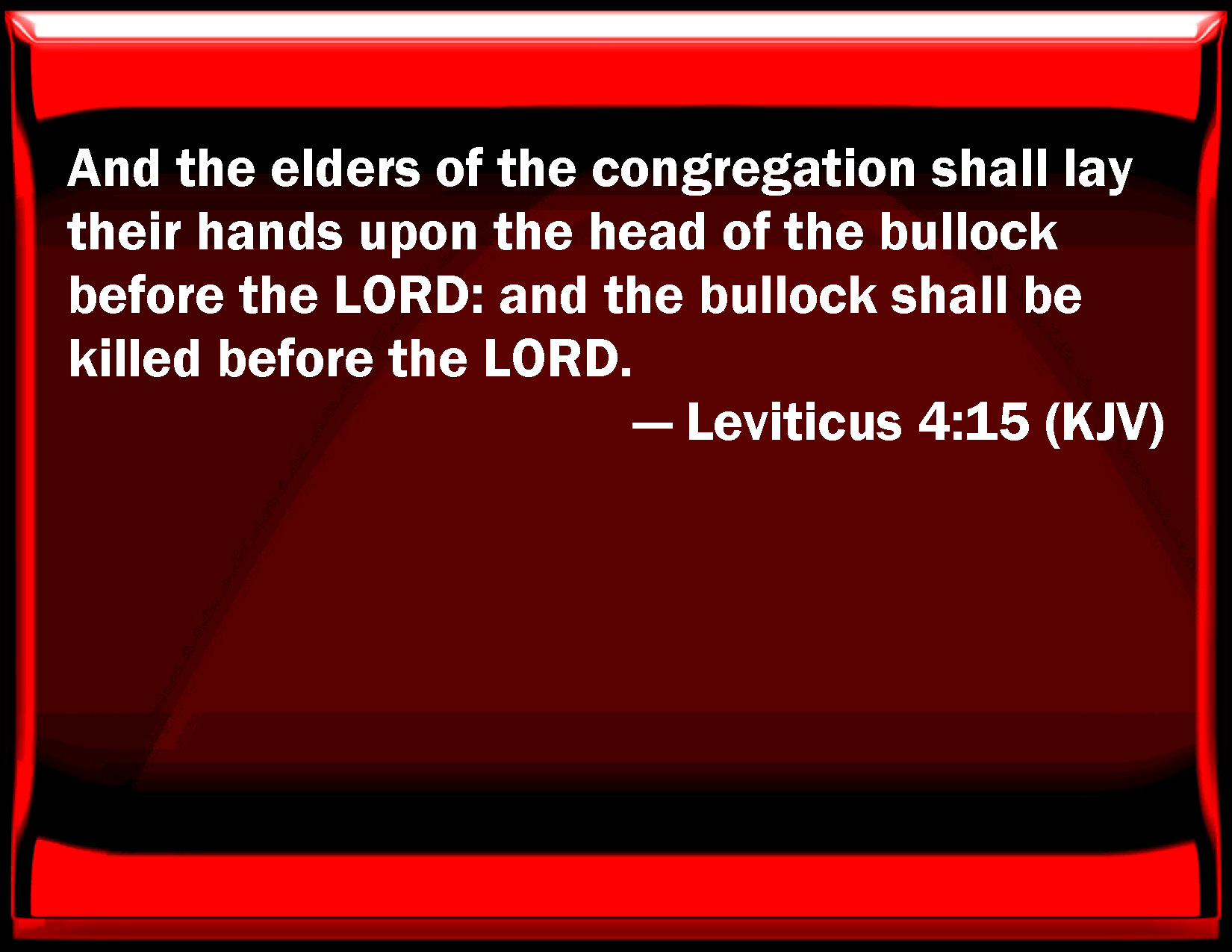 Leviticus 4:15 And the elders of the congregation shall lay their hands on the head of the bullock before the LORD: and the bullock shall be killed before the LORD.