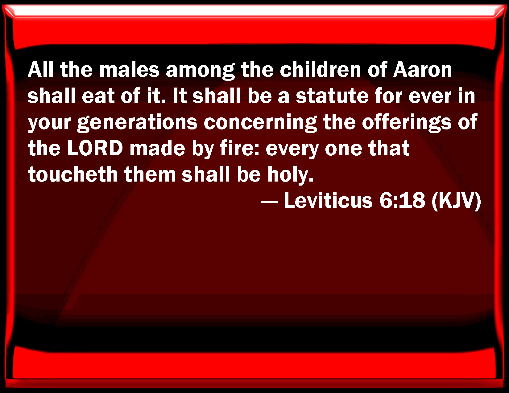 Leviticus 6:18 All the males among the children of Aaron shall eat of it. It shall be a statute for ever in your generations concerning the offerings of the LORD made by fire: every one that touches them shall be holy.