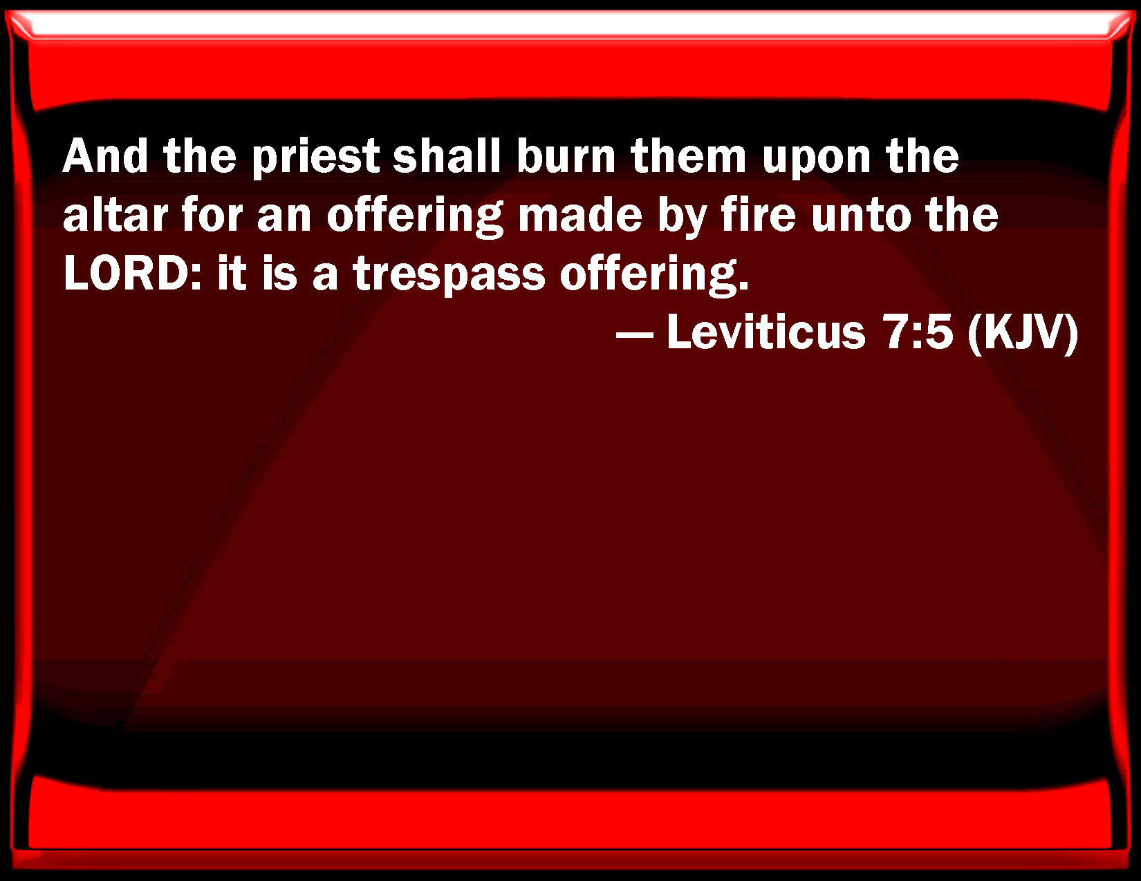 Leviticus 7:5 And the priest shall burn them on the altar for an offering made by fire to the LORD: it is a trespass offering.