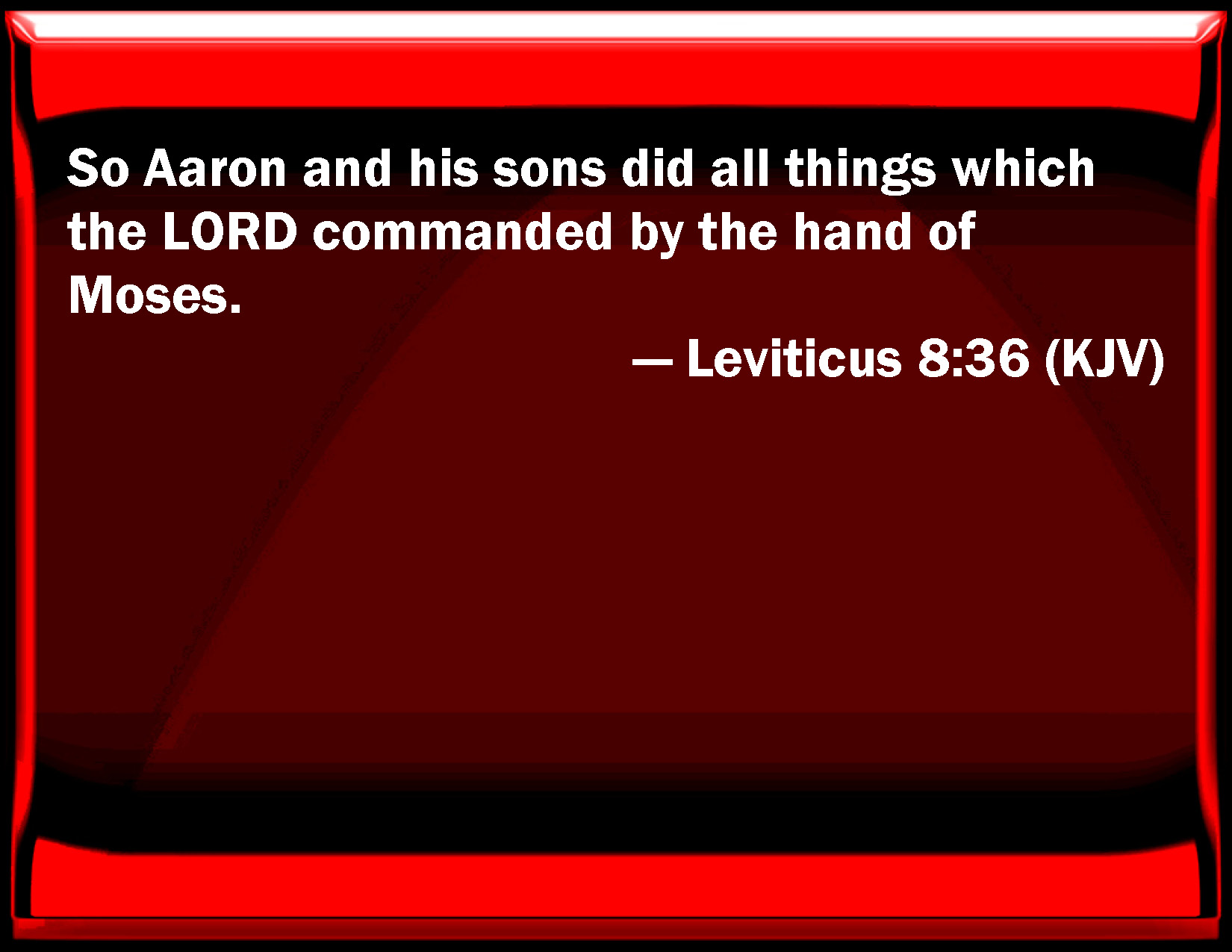 Leviticus 8:36 So Aaron and his sons did all things which the LORD commanded by the hand of Moses.