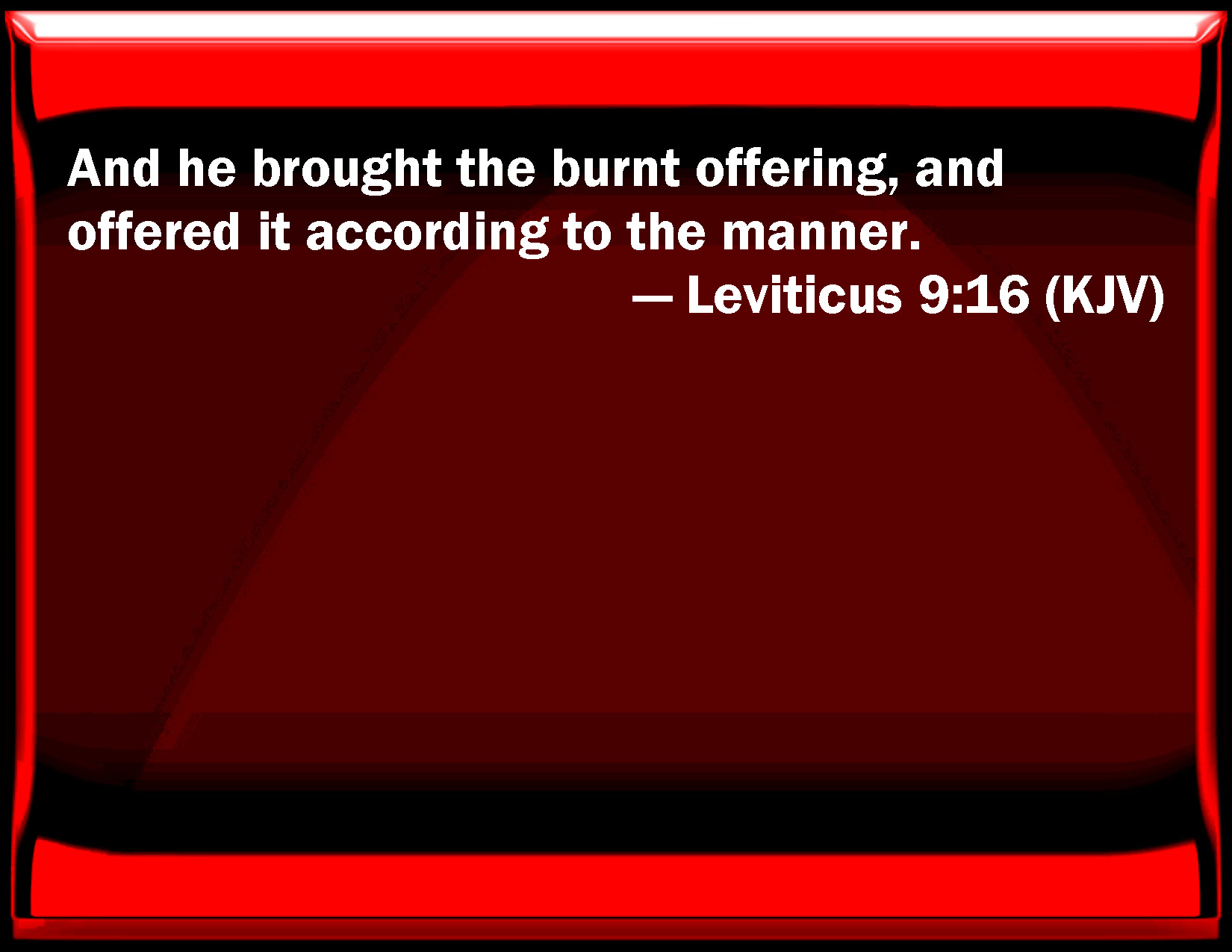 Leviticus 9:16 And he brought the burnt offering, and offered it according to the manner.