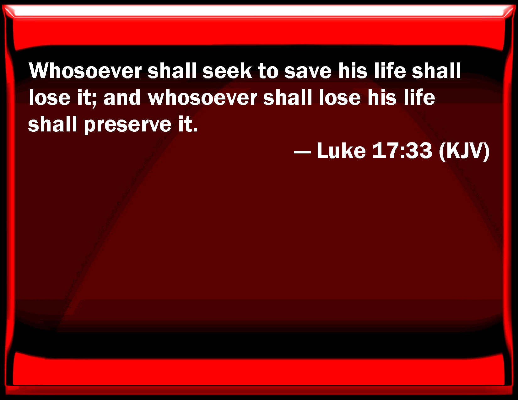 Luke 17:33 Whoever shall seek to save his life shall lose it; and whoever shall lose his life shall preserve it.