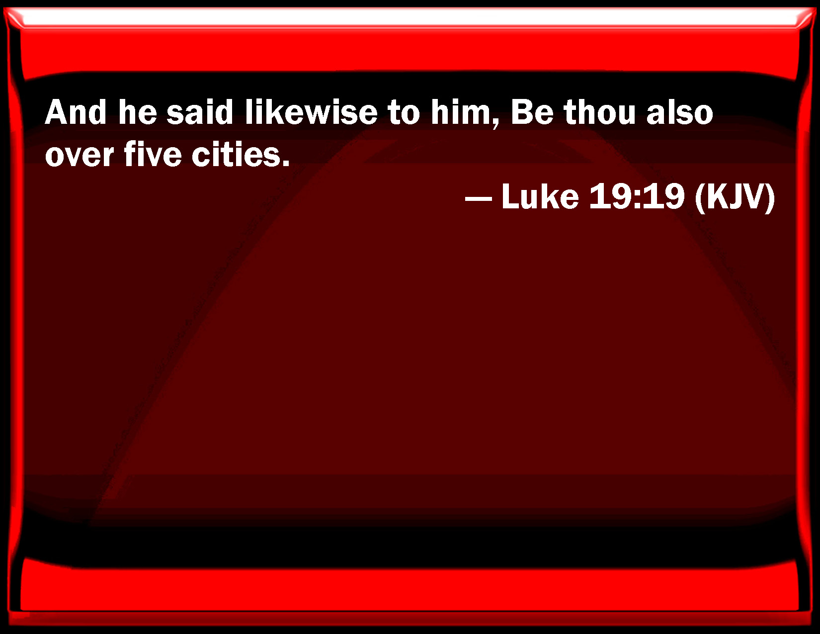 Luke 19:19 And he said likewise to him, Be you also over five cities.