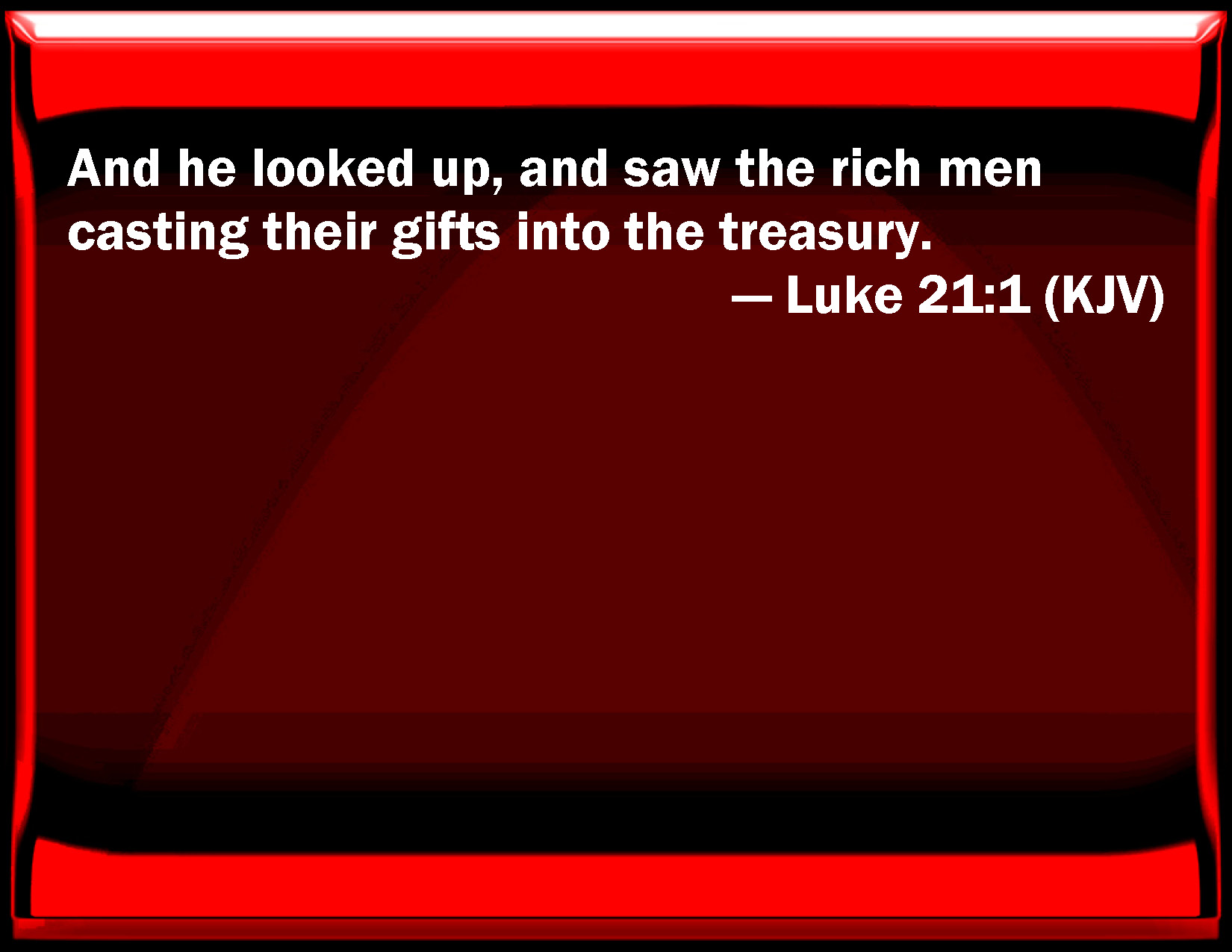 Luke 21:1 And he looked up, and saw the rich men casting their gifts into the treasury.