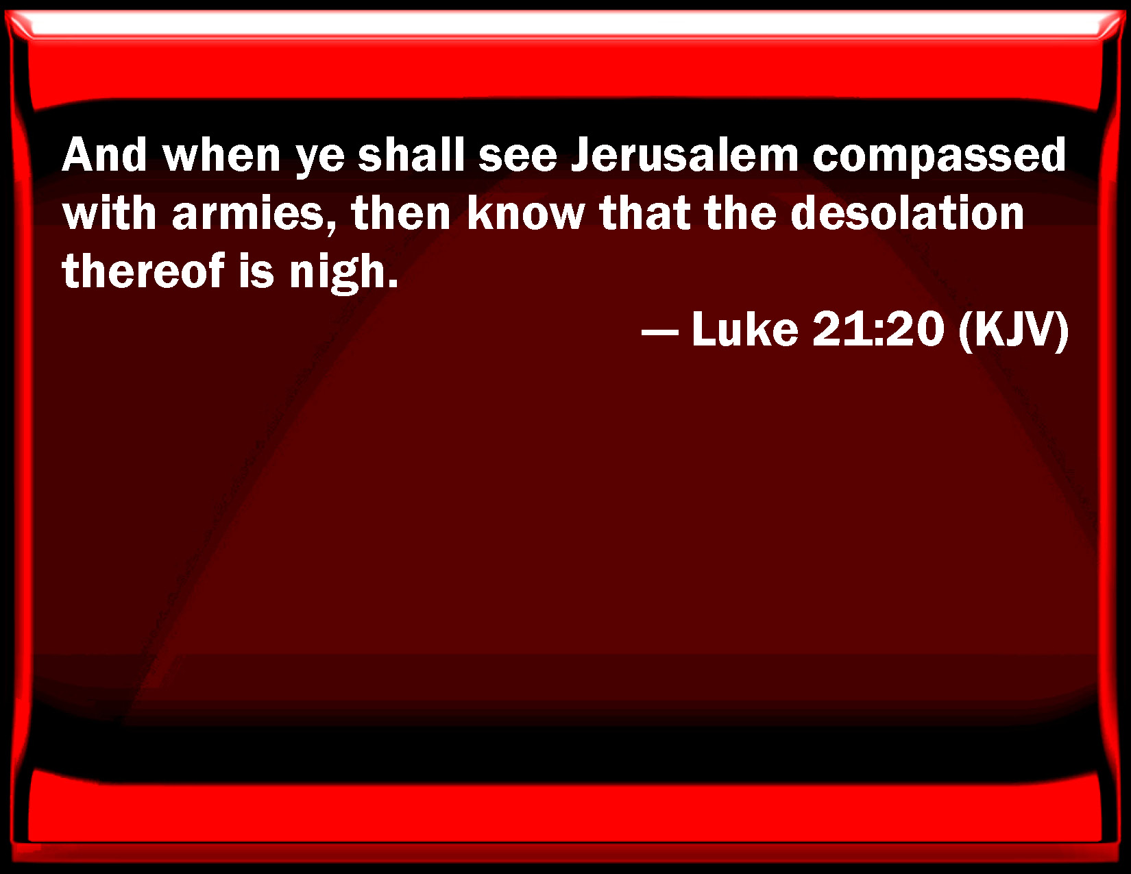 Luke 21:20 And when you shall see Jerusalem compassed with armies, then know that the desolation thereof is near.