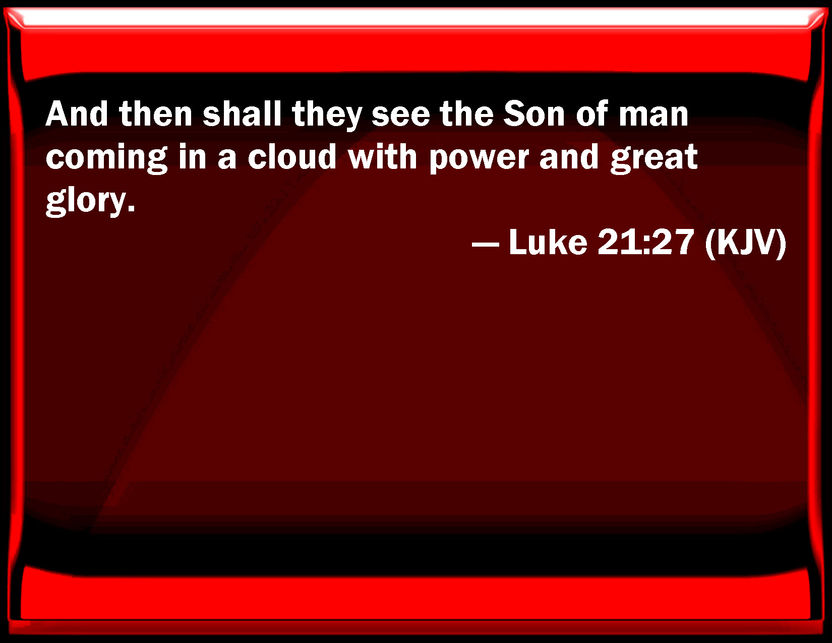 Luke 21:27 And then shall they see the Son of man coming in a cloud with power and great glory.