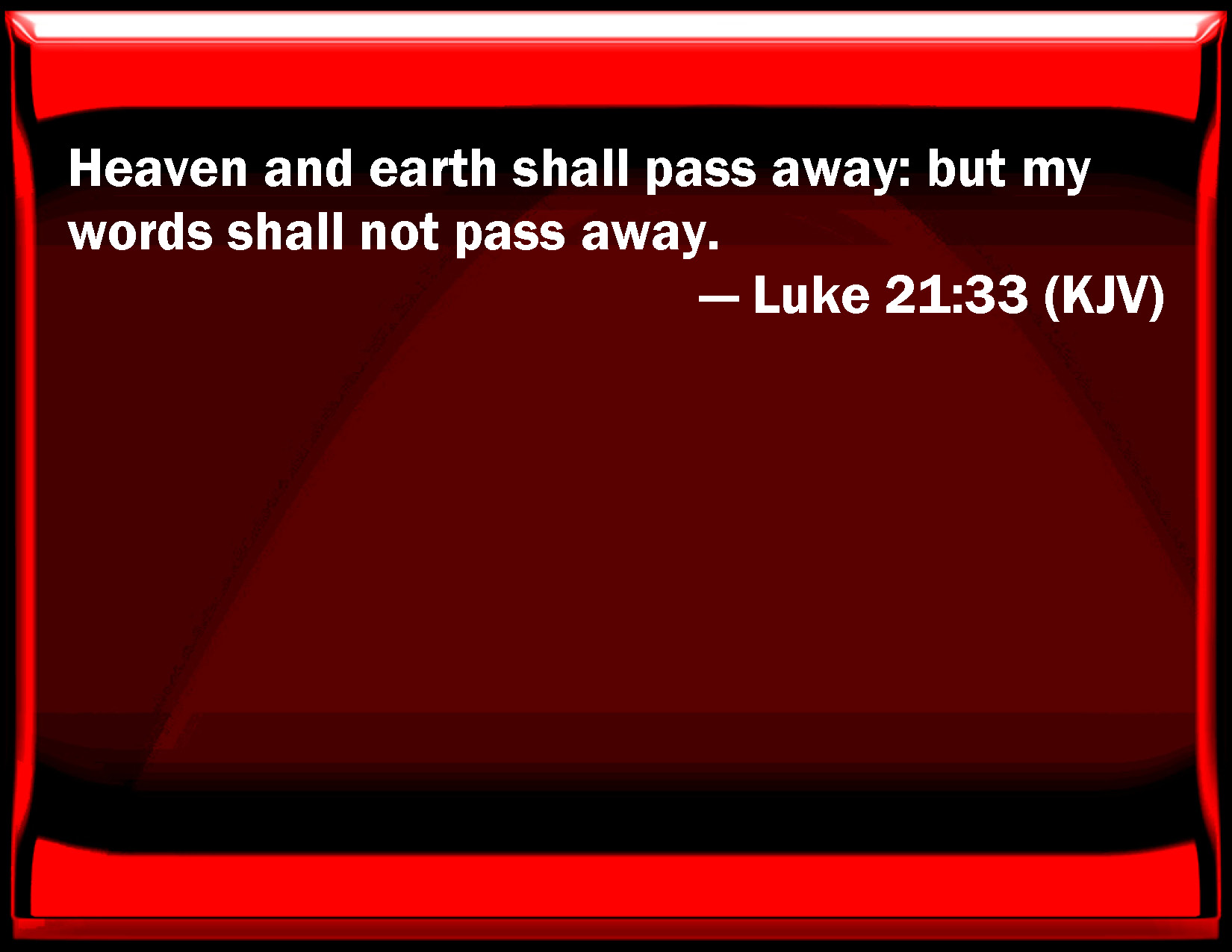 Luke 21:33 Heaven and earth shall pass away: but my words shall not pass away.