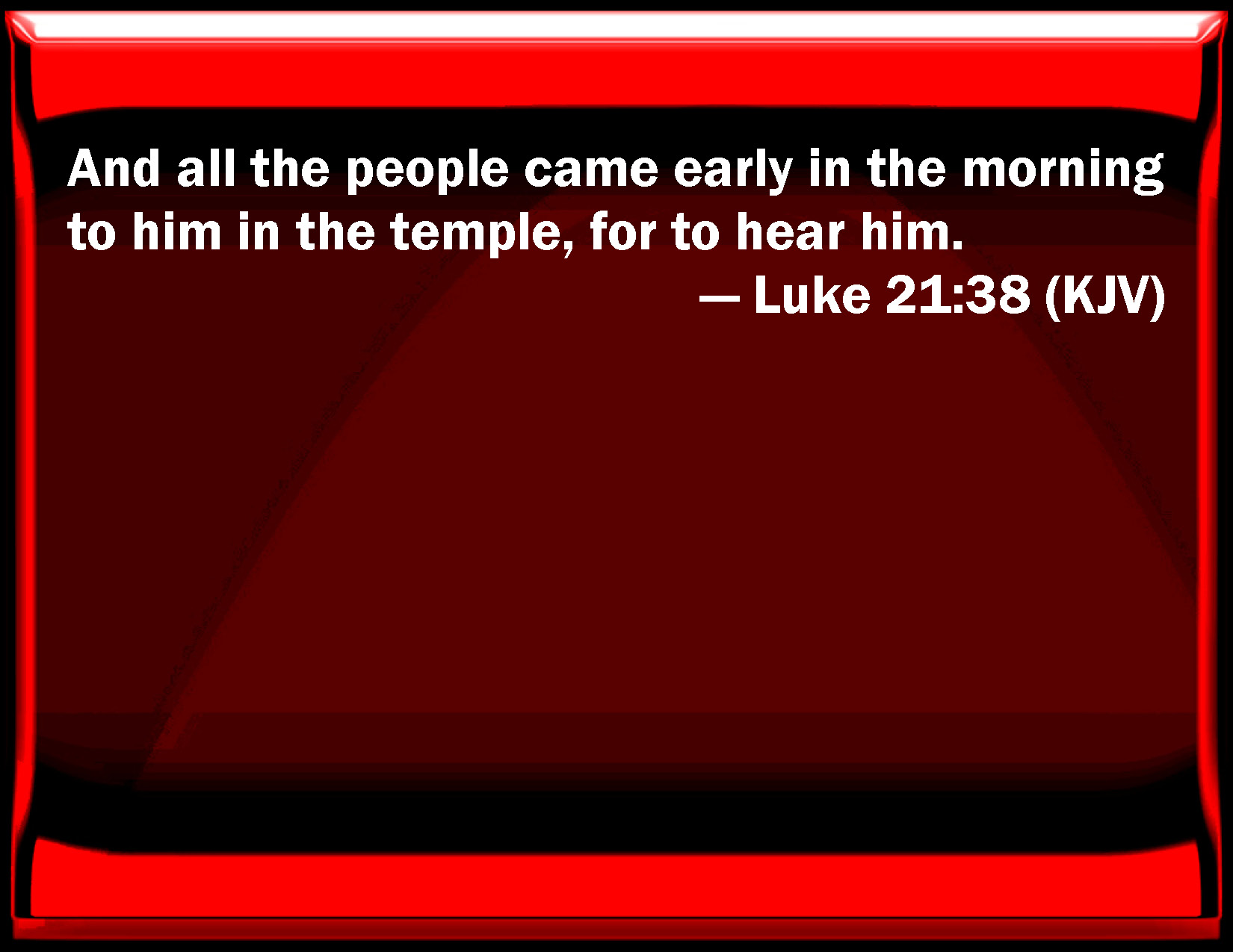 Luke 21:38 And all the people came early in the morning to him in the temple, for to hear him.