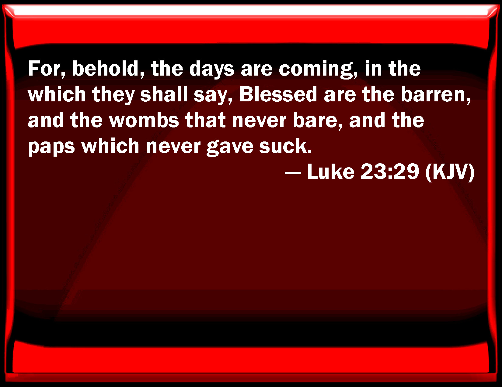 ERV:  For behold, the days are coming, in which they shall say, Blessed are the barren, and the wombs that never bare, and the breasts that never gave suck.