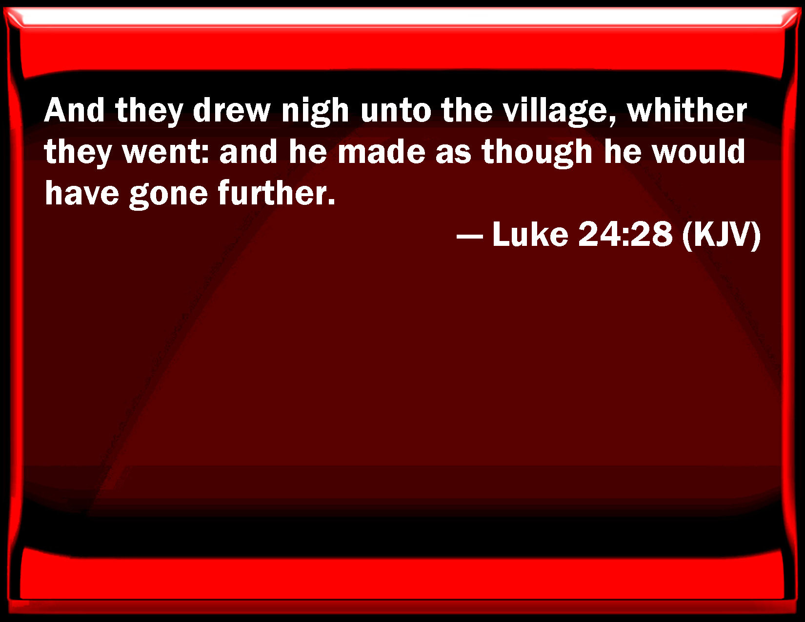 Luke 24:28 And they drew near to the village, where they went: and he made as though he would have gone further.