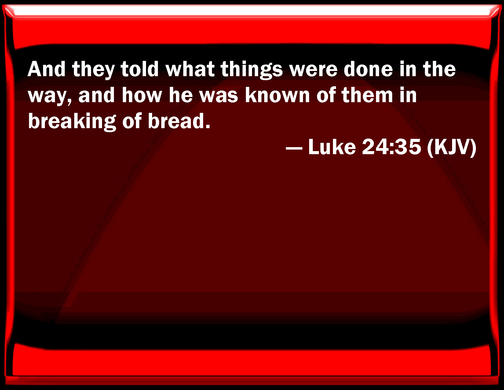 Luke 24:35 And they told what things were done in the way, and how he was known of them in breaking of bread.