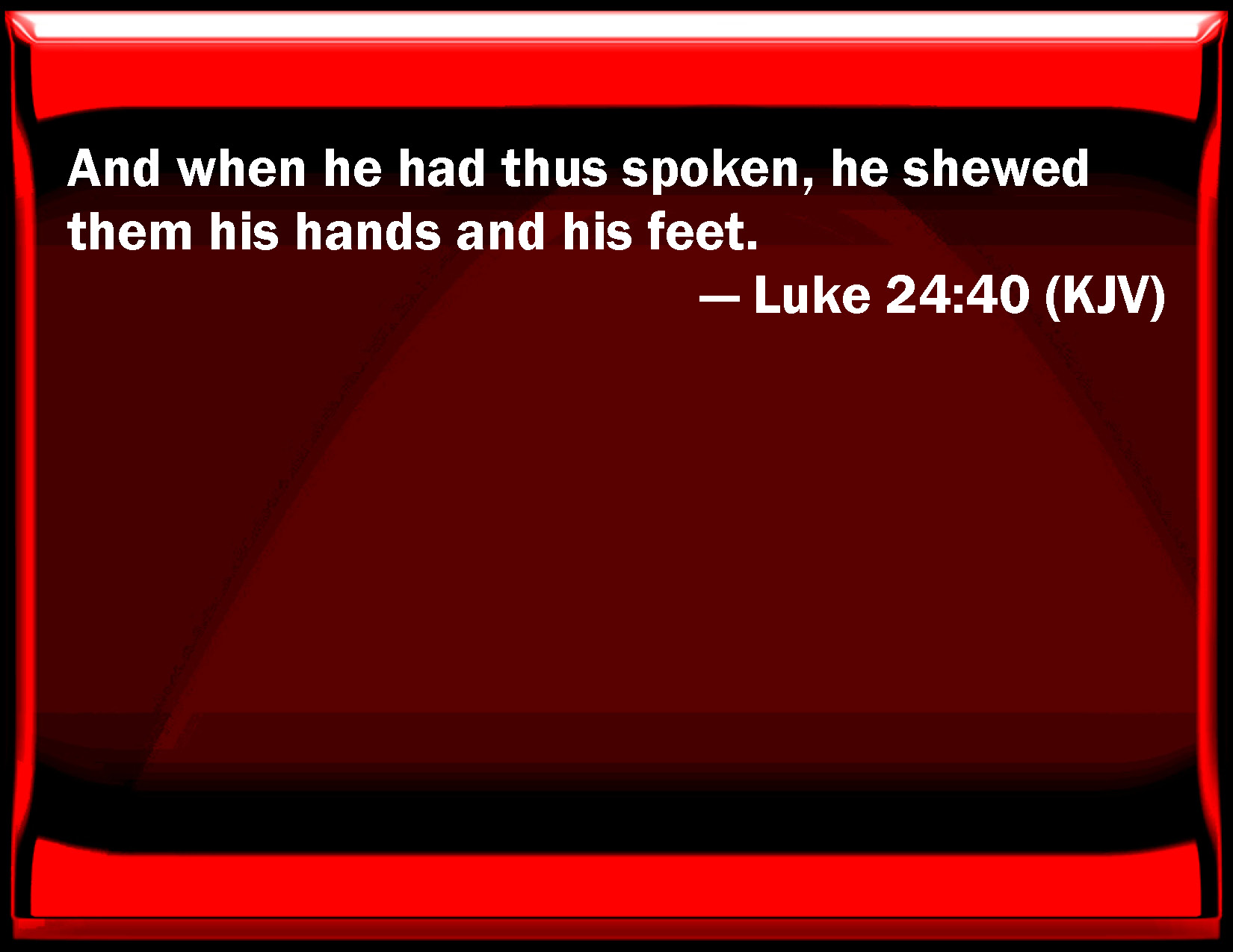 Luke 24:40 And when he had thus spoken, he showed them his hands and his feet.
