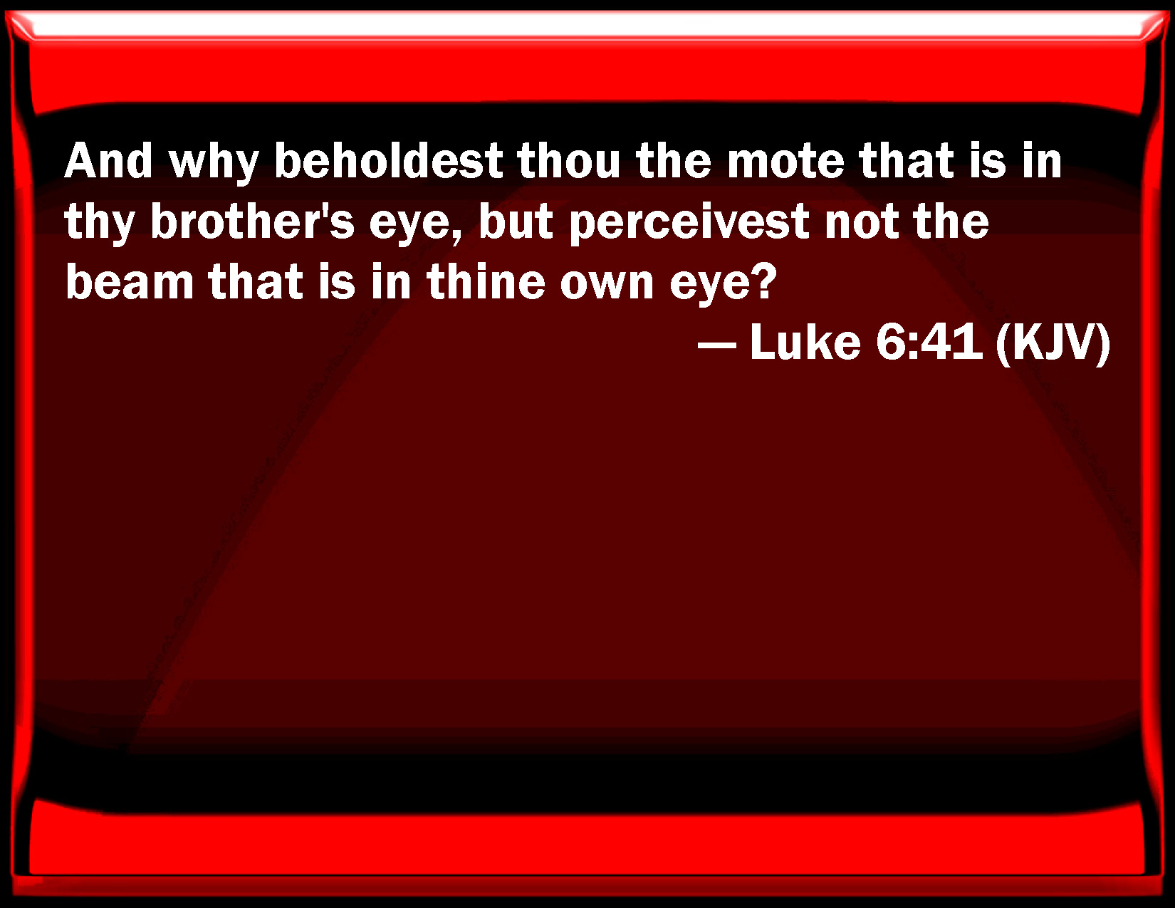 Luke 6:41 And why behold you the mote that is in your brother's eye, but perceive not the beam that is in your own eye?