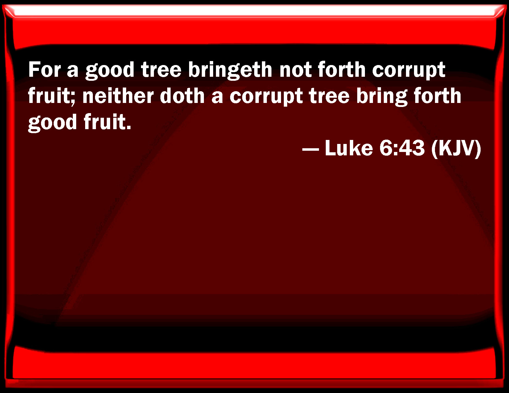 Luke 6:43 For a good tree brings not forth corrupt fruit; neither does a corrupt tree bring forth good fruit.