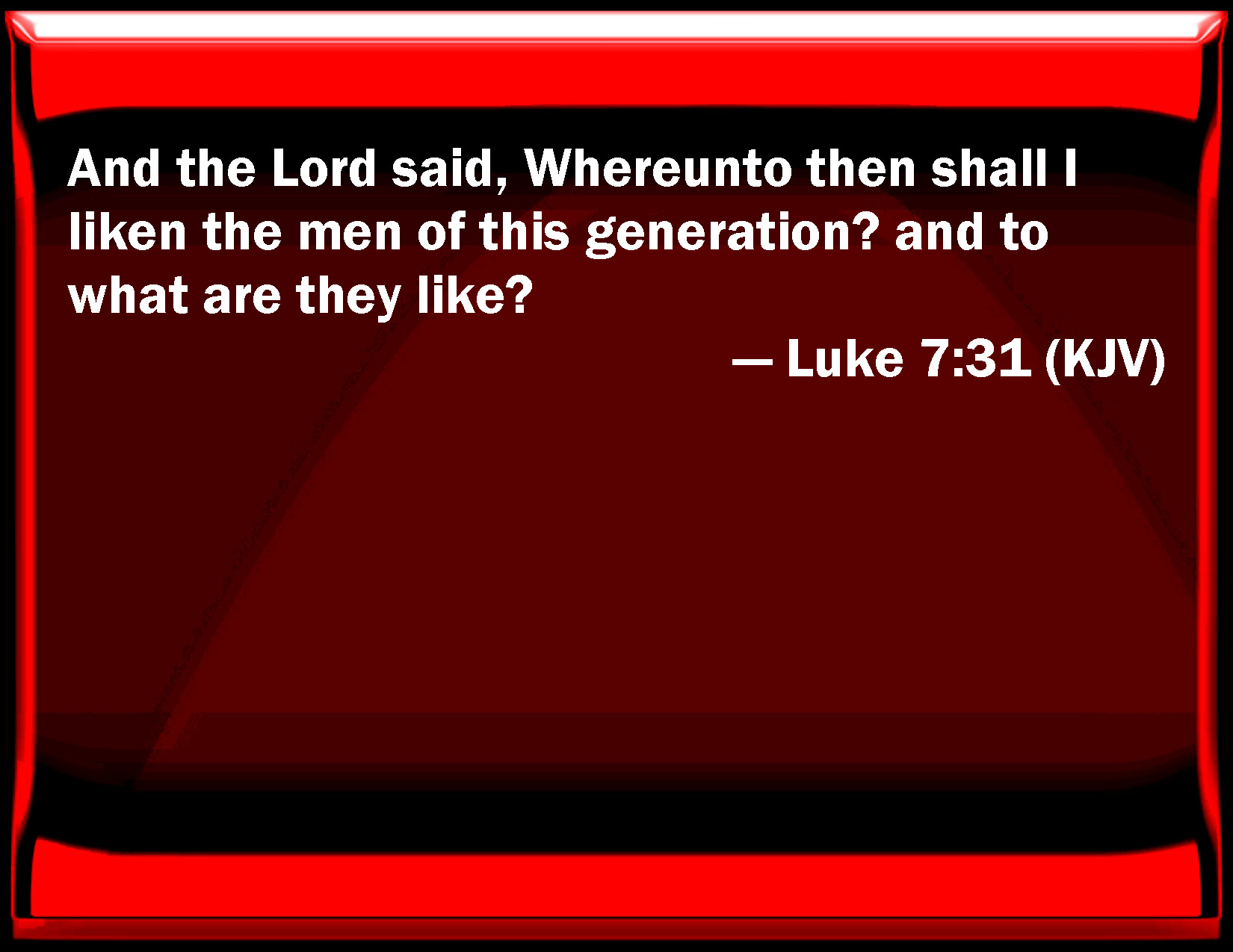 Luke 7:31 And the Lord said, Whereunto then shall I liken the men of this generation? and to what are they like?