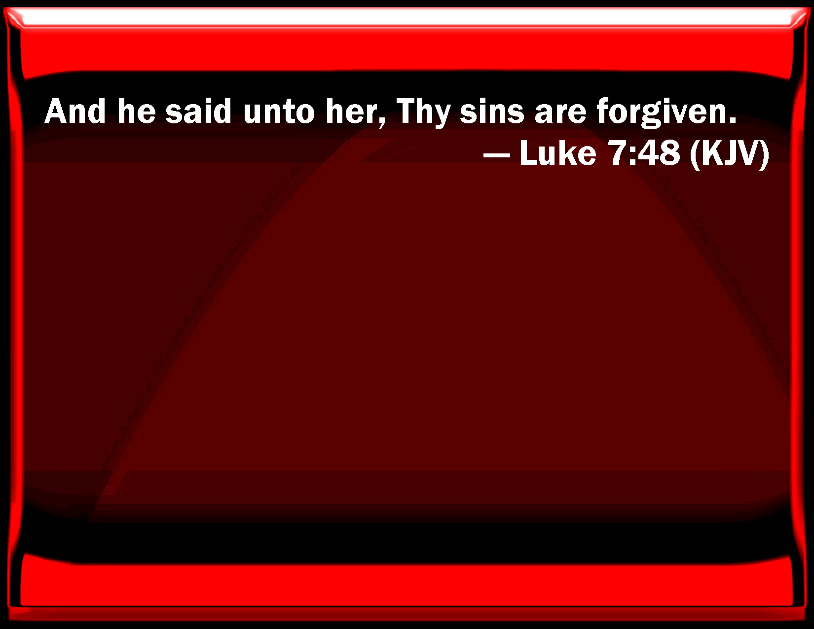 Luke 7:48 And he said to her, Your sins are forgiven.