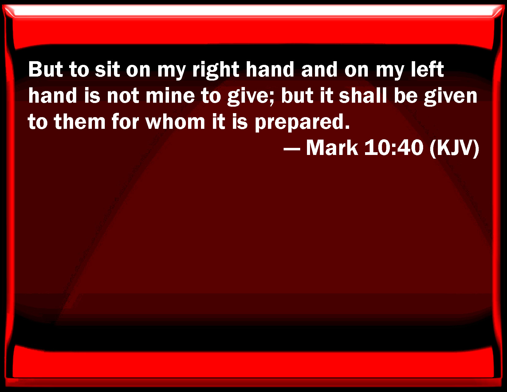 Mark 10:40 But to sit on my right hand and on my left hand is not my to give; but it shall be given to them for whom it is prepared.