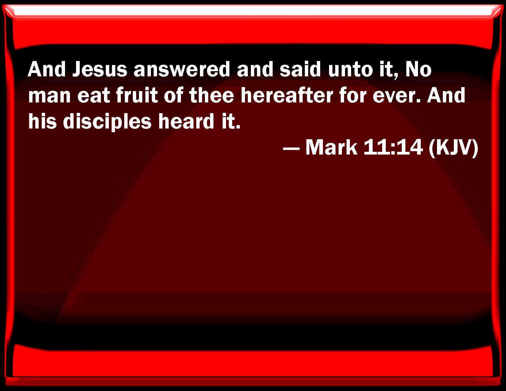 Mark 11:14 And Jesus answered and said to it, No man eat fruit of you hereafter for ever. And his disciples heard it.