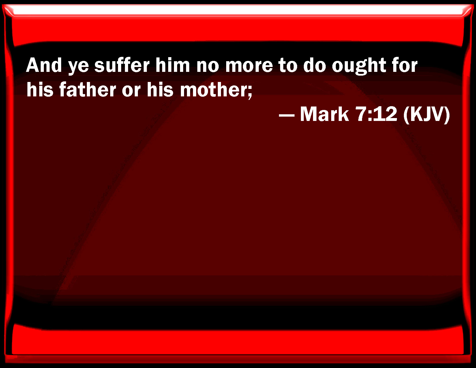 Mark 7:12 And you suffer him no more to do ought for his father or his mother;