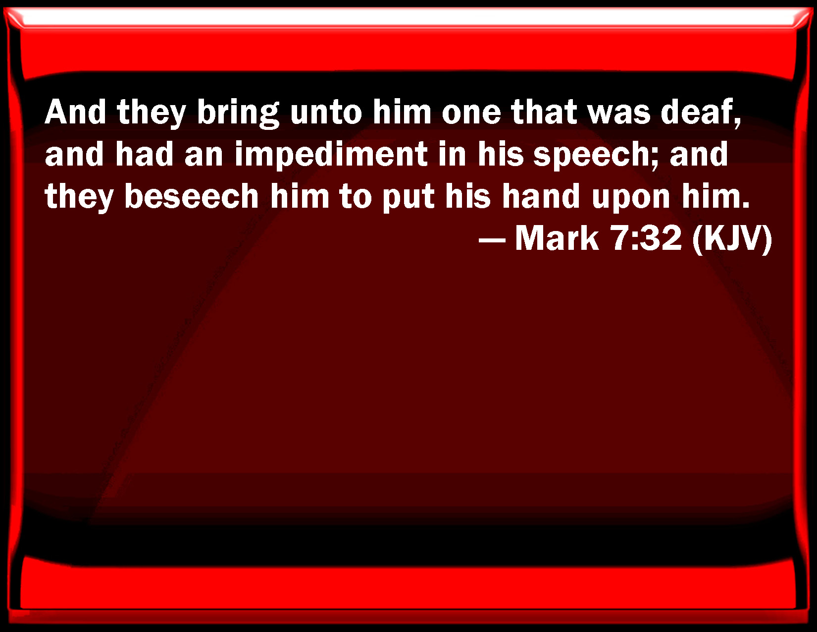 And they bring unto him one that was deaf, and had an impediment in his speech; and they beseech him to lay his hand upon him.