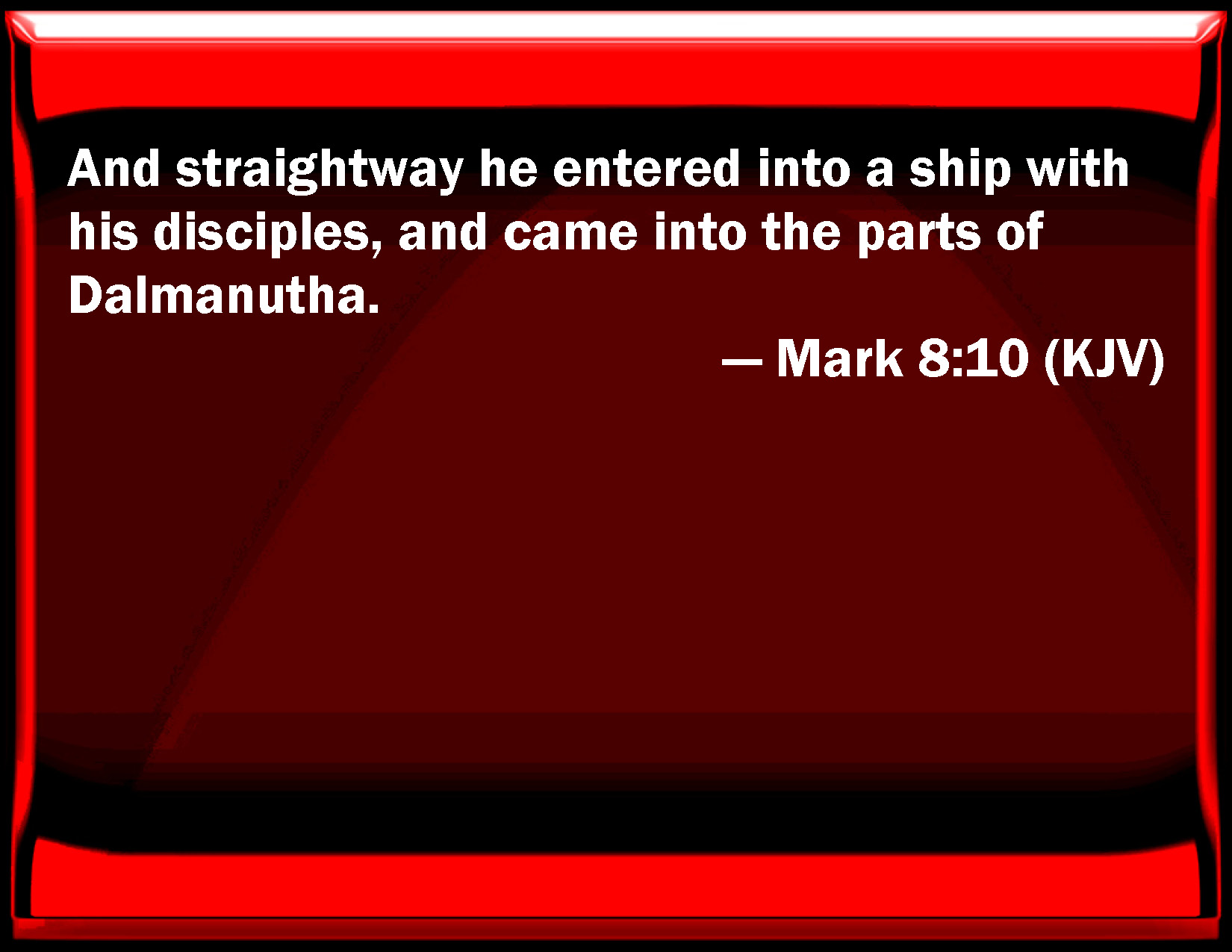 Mark 8:10 And straightway he entered into a ship with his disciples, and came into the parts of Dalmanutha.