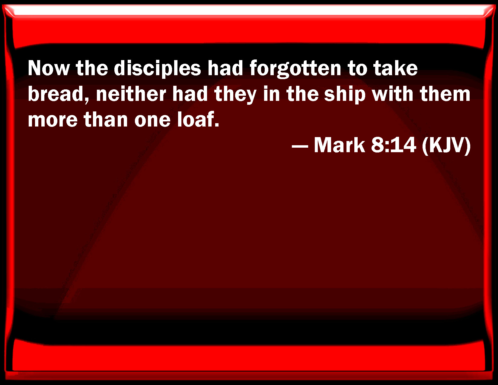 Mark 8:14 Now the disciples had forgotten to take bread, neither had they in the ship with them more than one loaf.