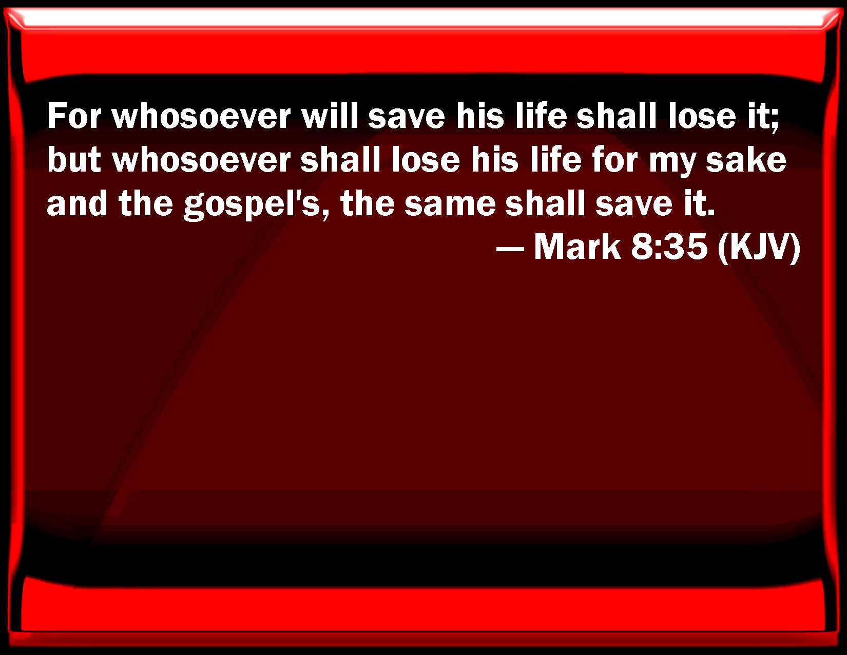 Mark 8:35 For whoever will save his life shall lose it; but whoever shall lose his life for my sake and the gospel's, the same shall save it.