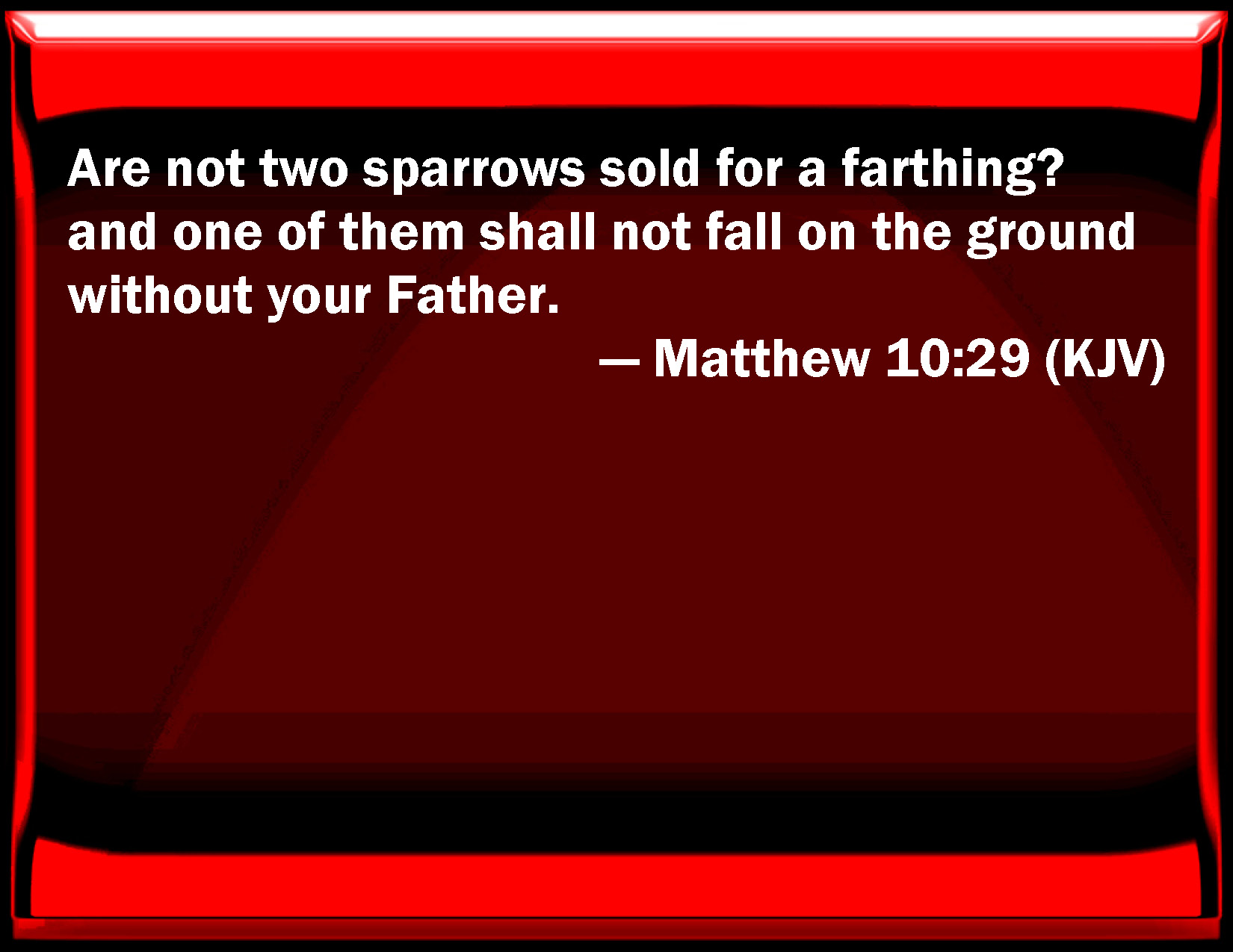 Are not two sparrows sold for a farthing? and one of them shall not fall to the ground without your Father;
