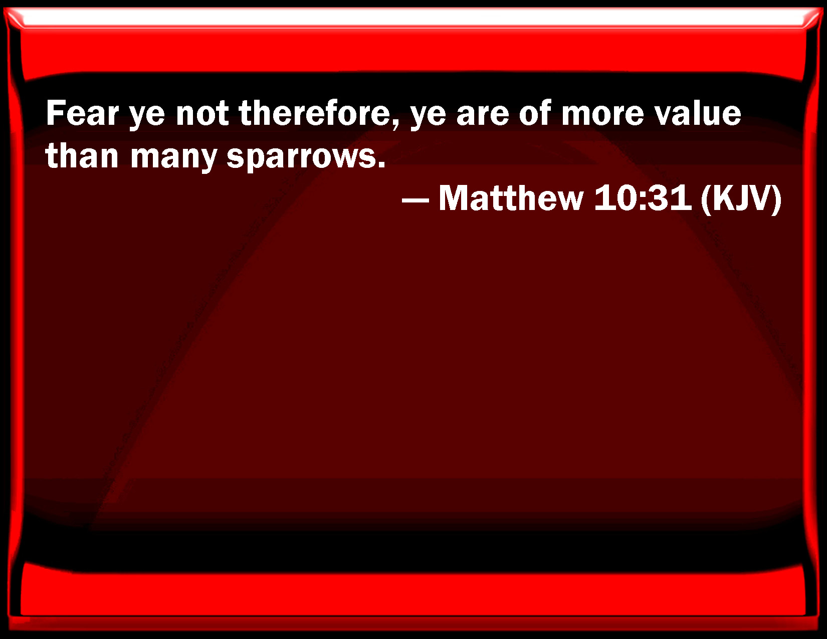 Matthew 10:31 Fear you not therefore, you are of more value than many sparrows.