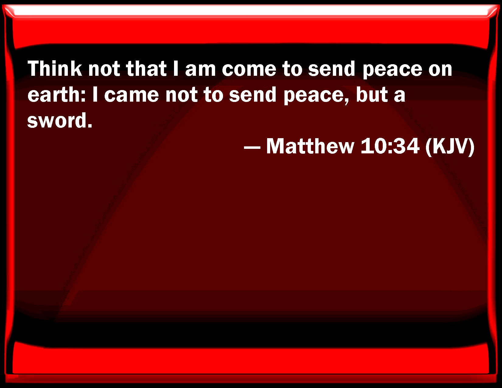 Matthew 10:34 Think not that I am come to send peace on earth: I came not to send peace, but a sword.