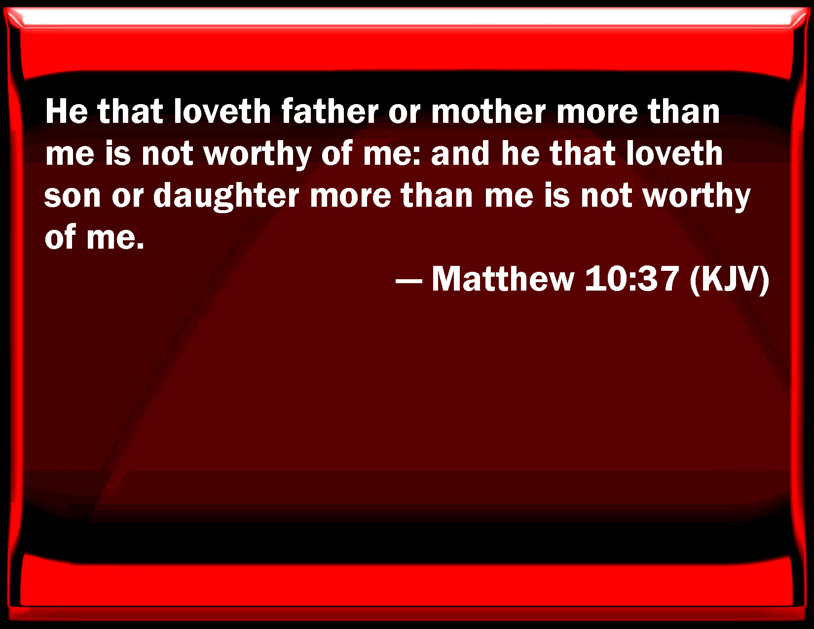 He who loves father or mother above me is not worthy of me; and he who loves son or daughter above me is not worthy of me.