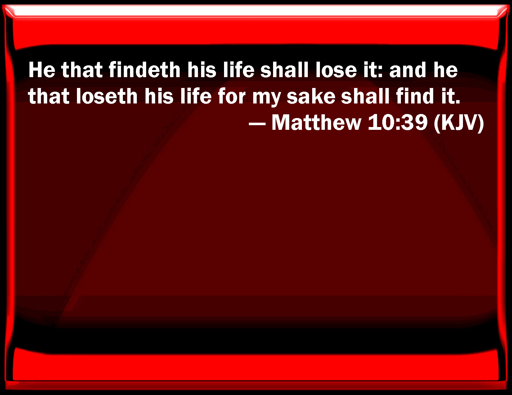 He that finds his life shall lose it, and he who has lost his life for my sake shall find it.
