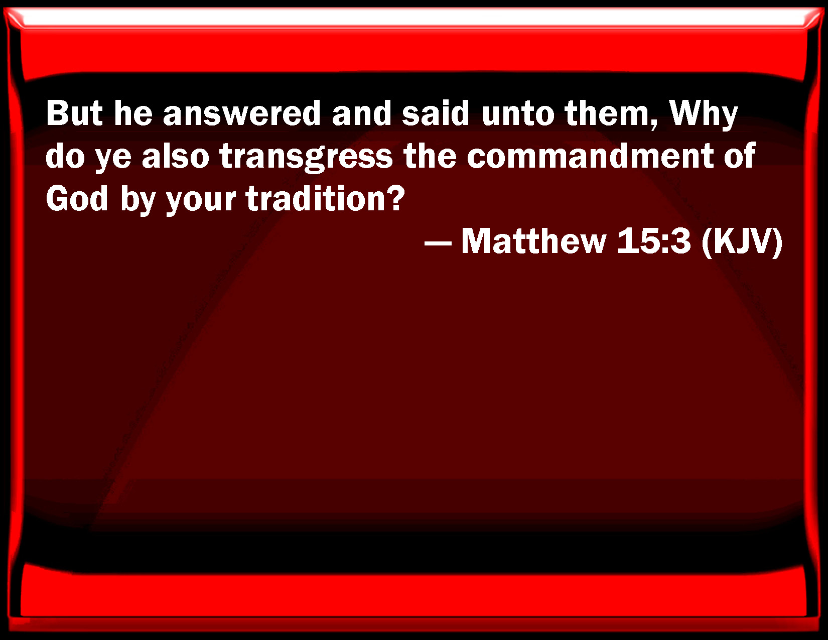 Matthew 15:3 But he answered and said to them, Why do you also transgress the commandment of God by your tradition?