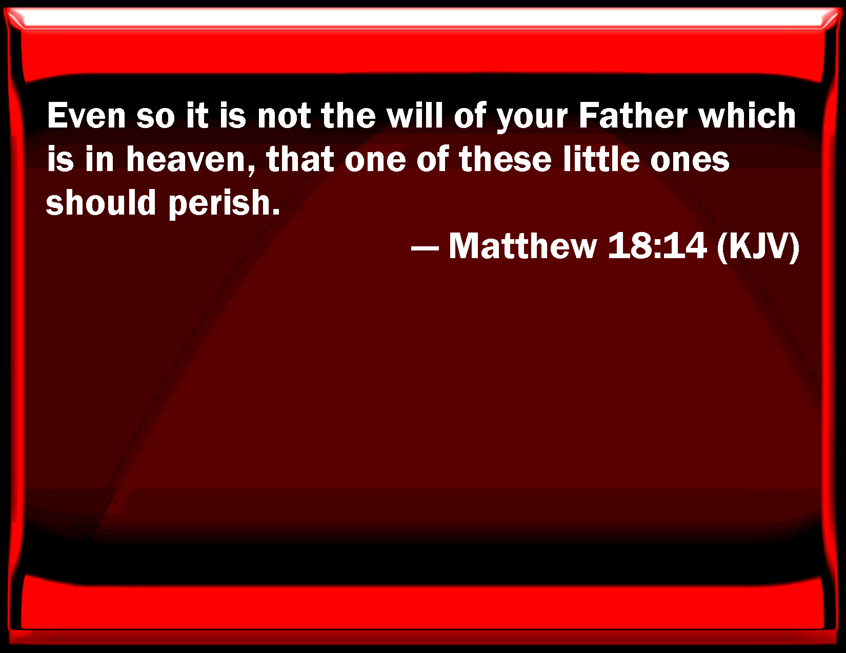 Matthew 18:14 Even so it is not the will of your Father which is in heaven, that one of these little ones should perish.