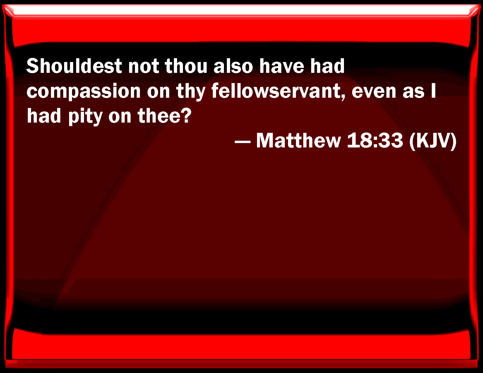 Matthew 18:33 Should not you also have had compassion on your fellow servant, even as I had pity on you?