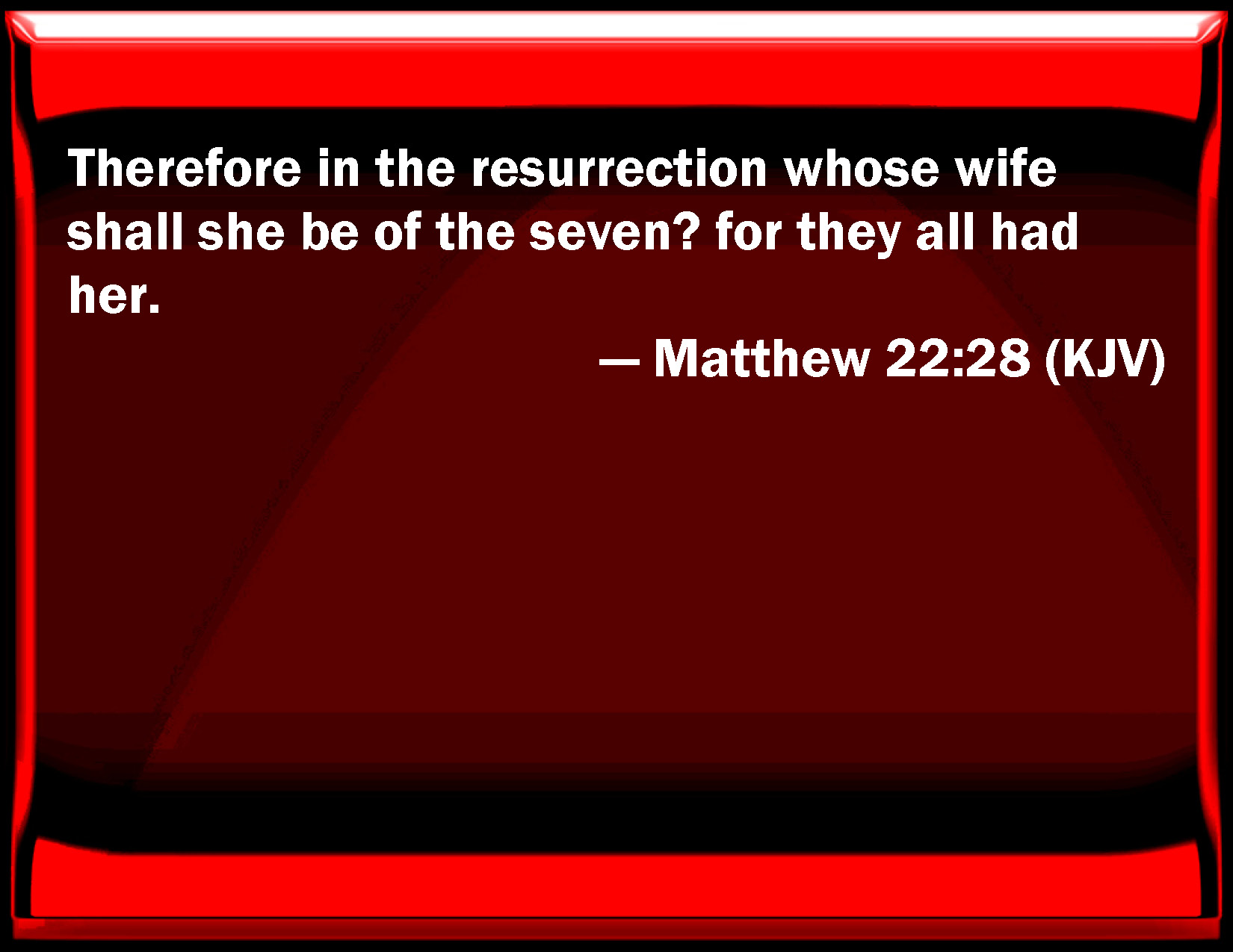 Matthew 22:28 Therefore in the resurrection whose wife shall she be of the seven? for they all had her.