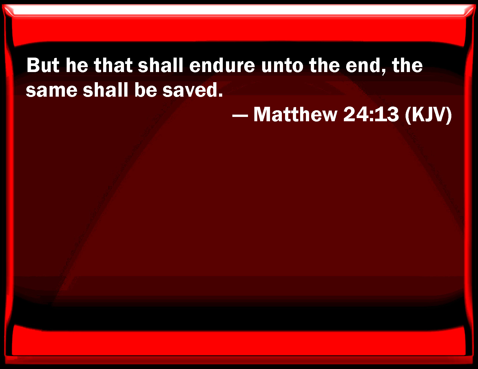 Matthew 24:13 But he that shall endure to the end, the same shall be saved.