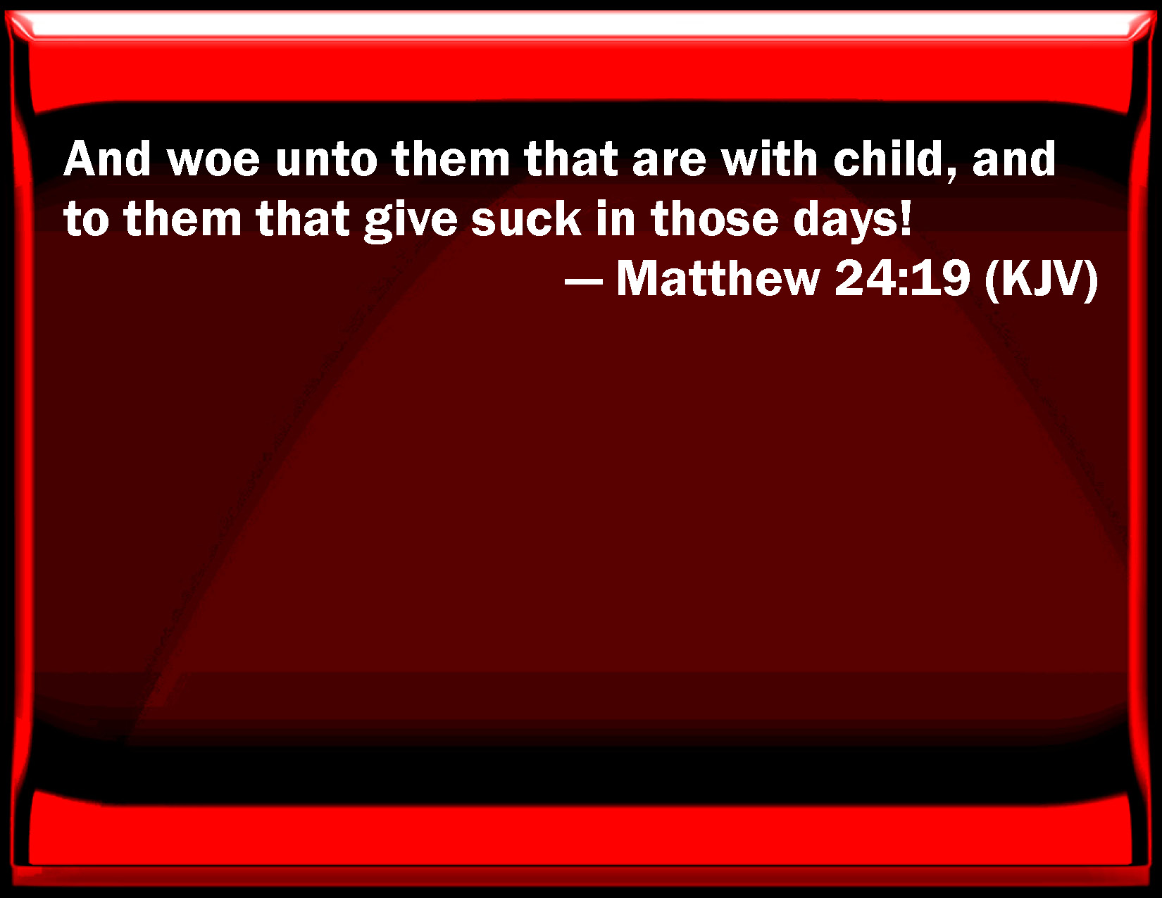 Matthew 24:19 And woe to them that are with child, and to them that give suck in those days!
