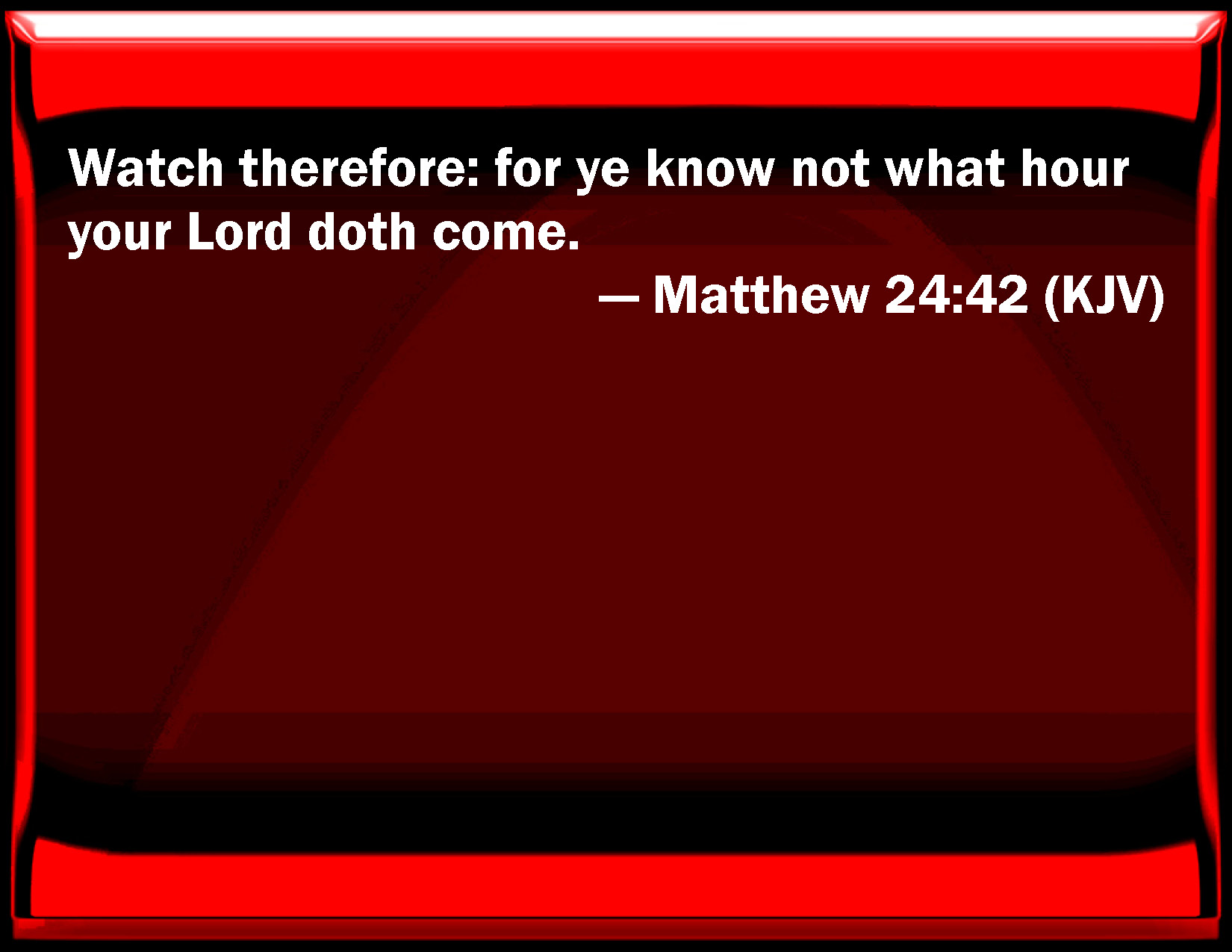 Matthew 24:42 Watch therefore: for you know not what hour your Lord does come.