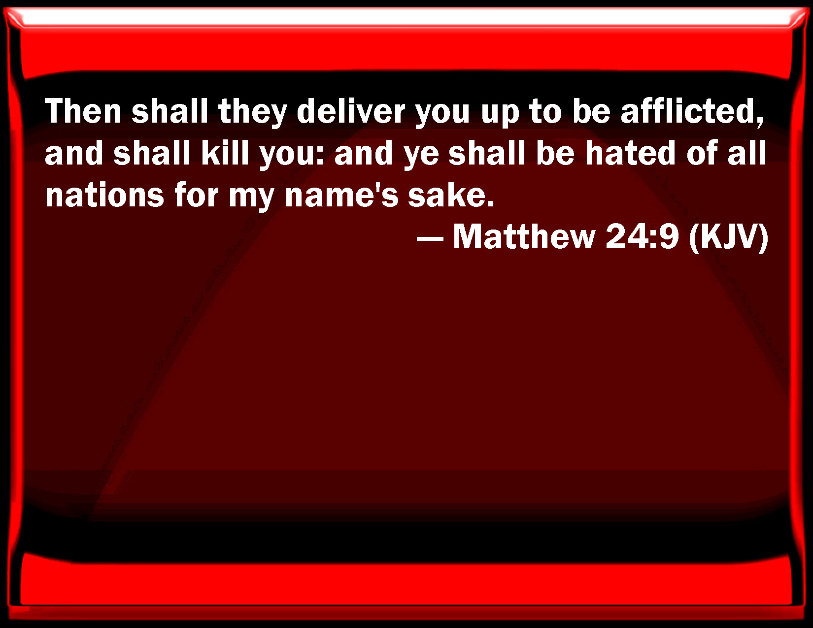 Matthew 24:9 Then shall they deliver you up to be afflicted, and shall kill you: and you shall be hated of all nations for my name's sake.