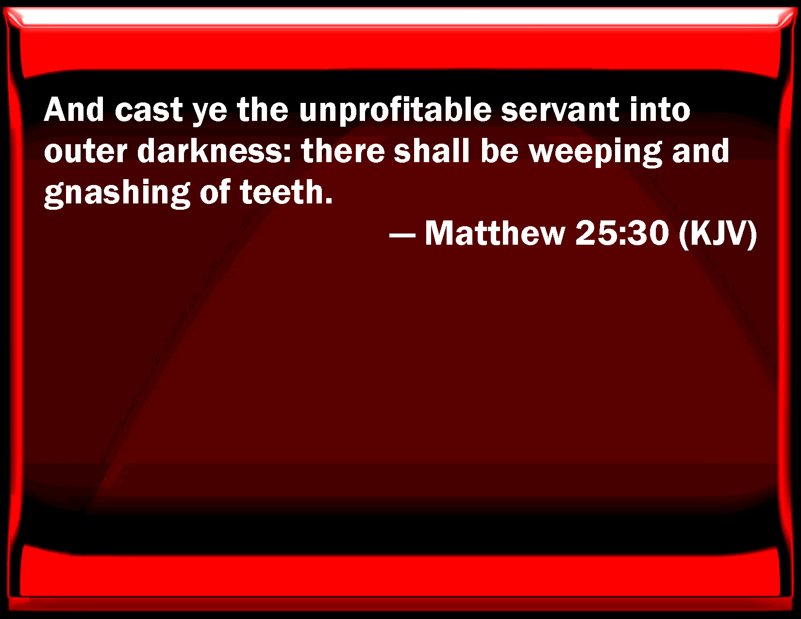 And the unprofitable servant cast ye out into the exterior darkness. There shall be weeping and gnashing of teeth.