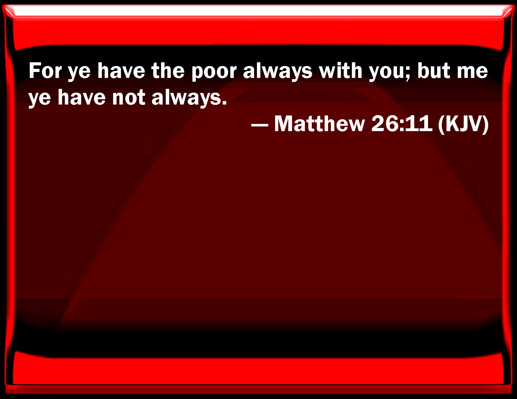 Matthew 26:11 For you have the poor always with you; but me you have not always.