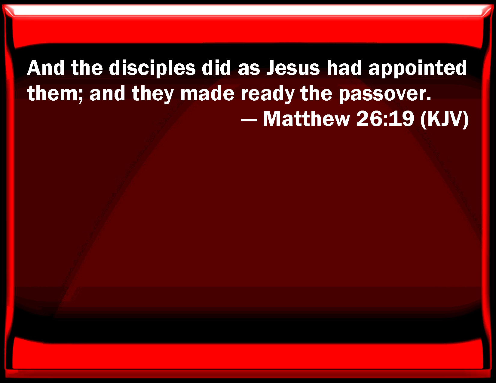Matthew 26:19 And the disciples did as Jesus had appointed them; and they made ready the passover.