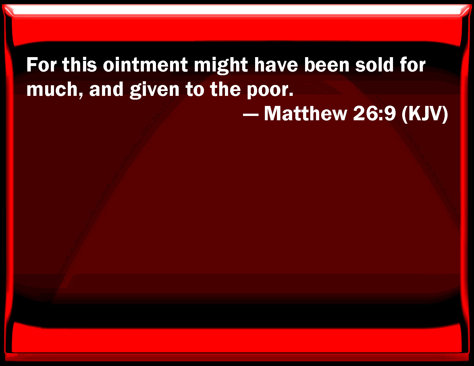 Matthew 26:9 For this ointment might have been sold for much, and given to the poor.