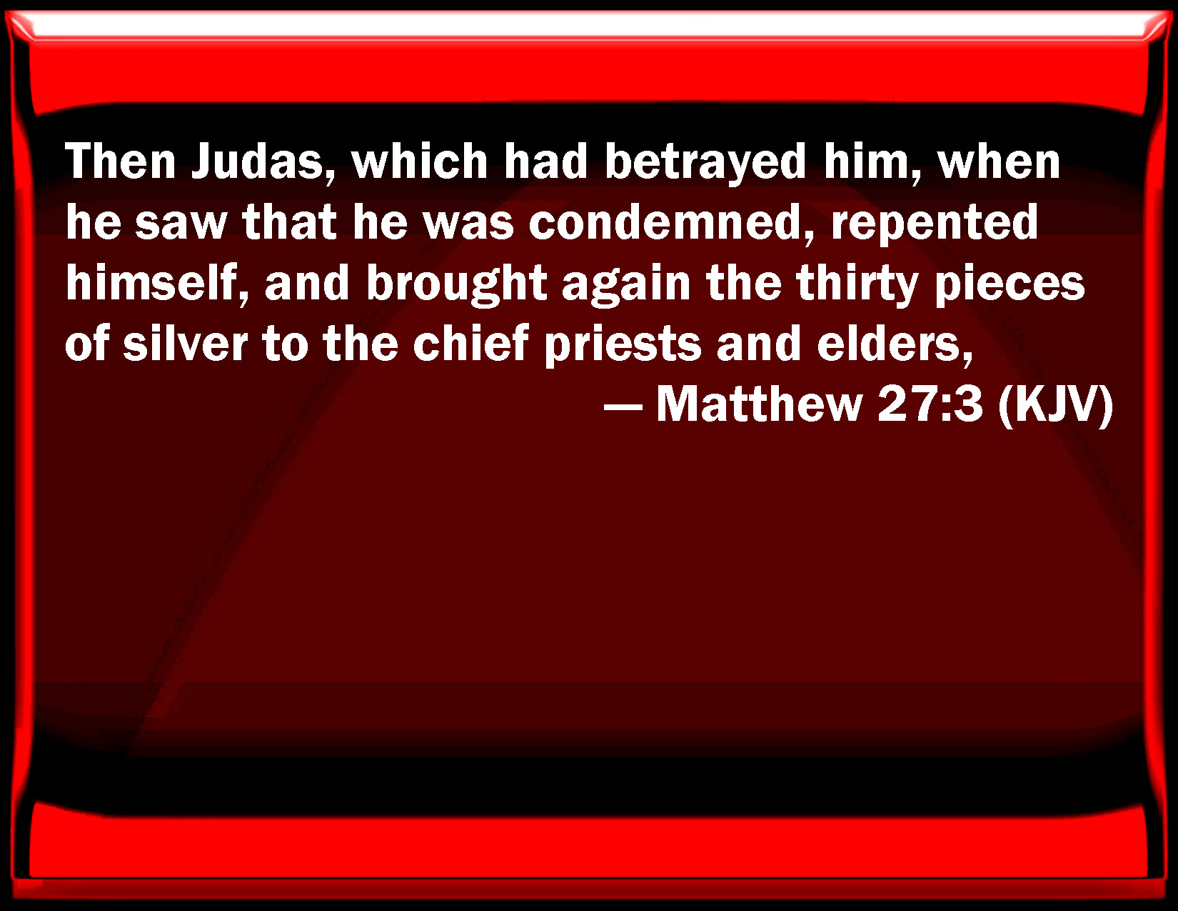 WBT:  Then Judas, who had betrayed him, when he saw that he was condemned, repented and brought again the thirty pieces of silver to the chief priests and elders,