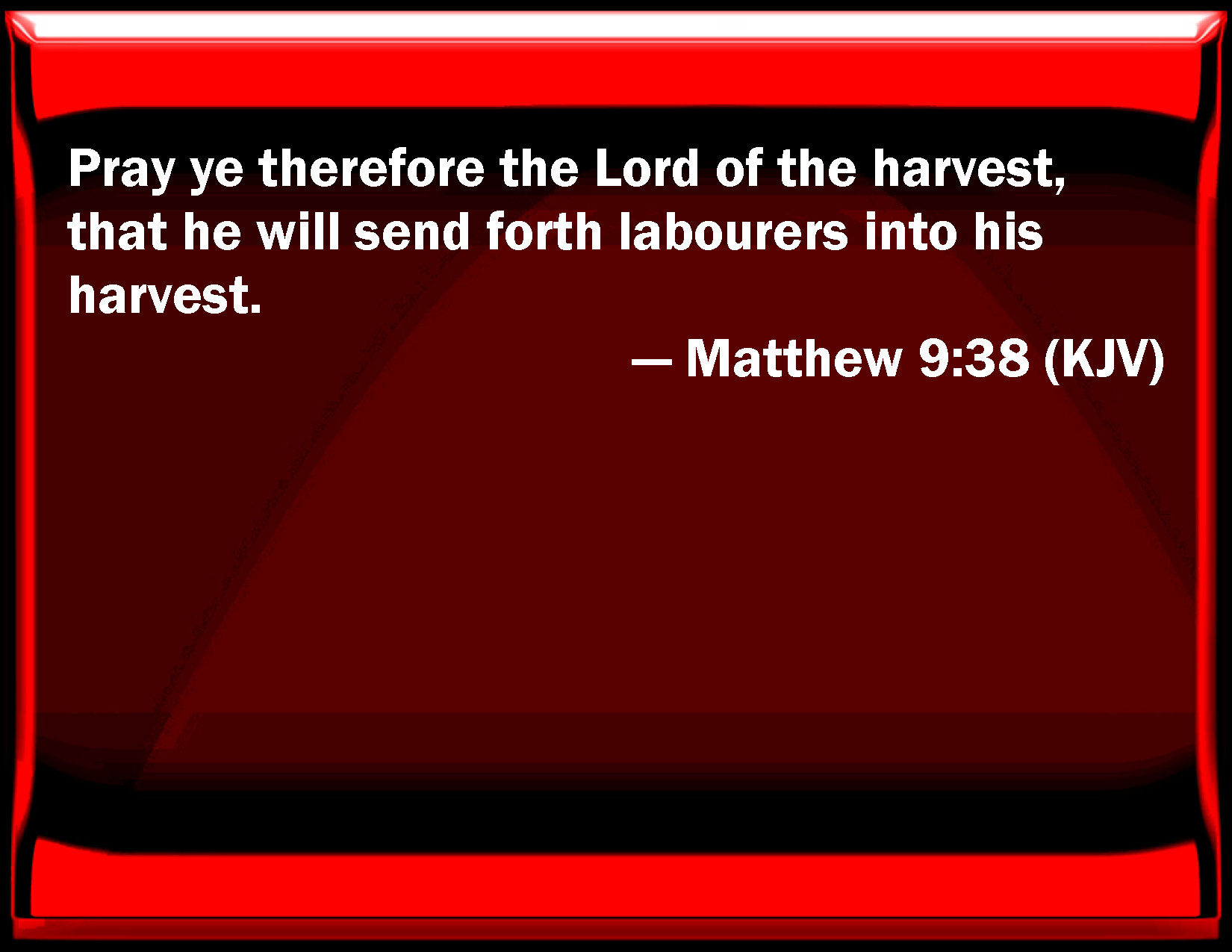 Matthew 9:38 Pray you therefore the Lord of the harvest, that he will send forth laborers into his harvest.