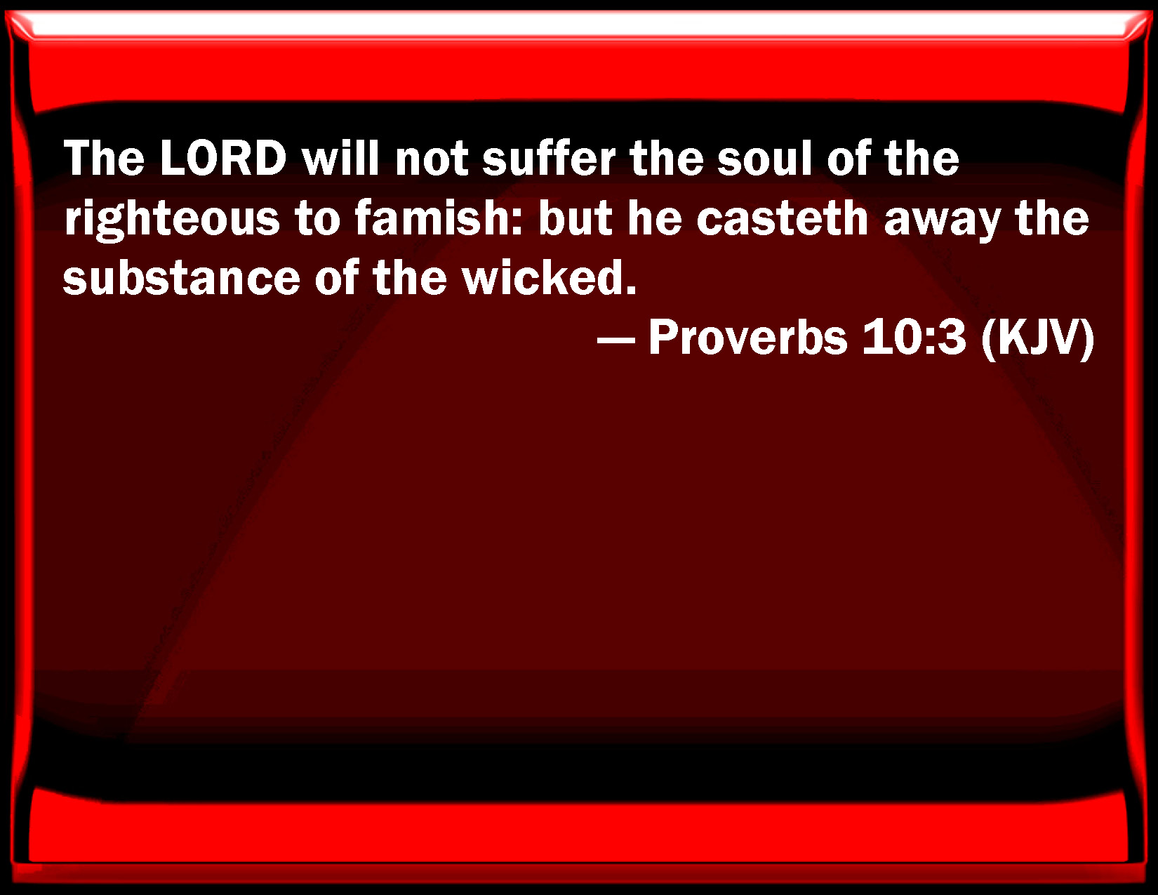 Proverbs 10:3 The LORD will not suffer the soul of the righteous to famish: but he casts away the substance of the wicked.