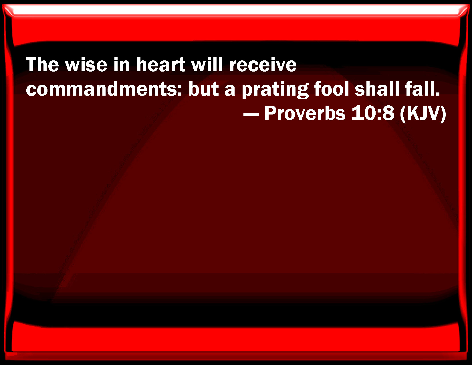Proverbs 10:8 The wise in heart will receive commandments: but a prating fool shall fall.