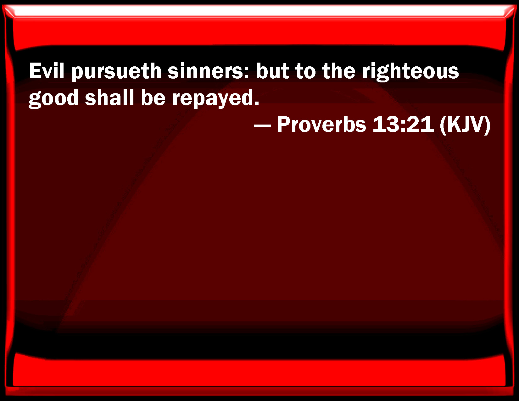 Proverbs 13:21 Evil pursues sinners: but to the righteous good shall be repaid.